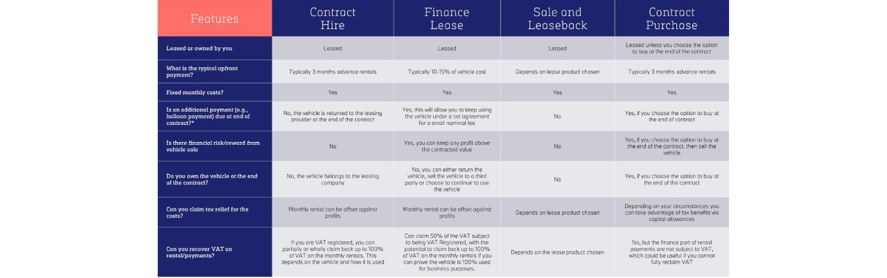 Financing vehicles through a leasing provider, on the other hand, offers lower initial costs, predictable monthly payments and reduced administrative effort via options that include servicing, maintenance and repair, but also means you’ll be subject to contractual agreements (and potential penalties for breaching these).