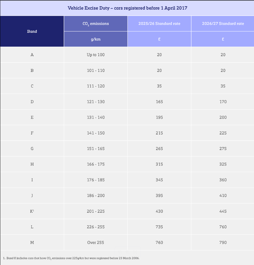 5. All cars with emissions greater than 0 g/km and a list price greater than £40,000 when new will be subject to an annual £440 expensive car supplement on top of the standard rate for 5 years. All zero-emission cars registered from 1 April 2025 with a list price greater than £50,000 when new will be subject to the annual £440 expensive car supplement, but zero-emission cars registered before 1 April 2025 are exempt.